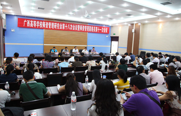 7月4日上午,广西高等学校师资管理研究会第十八次会议暨师资管理联络员第十一次会议在河池学院召开,河池学院院长郎耀秀,党委副书记韦仕珍,自治区教育厅职改办主任赵益真,教育部网络培训中心副主任沈强,广西高校师资培训中心专职副主任刘立浩出席会议。来自全区各高校负责师资管理工作的近80人参加会议,太阳集团tyc138ok138太阳集团古天乐分管师资负责人董译升参加会议并主持了本科院校组讨论会。
