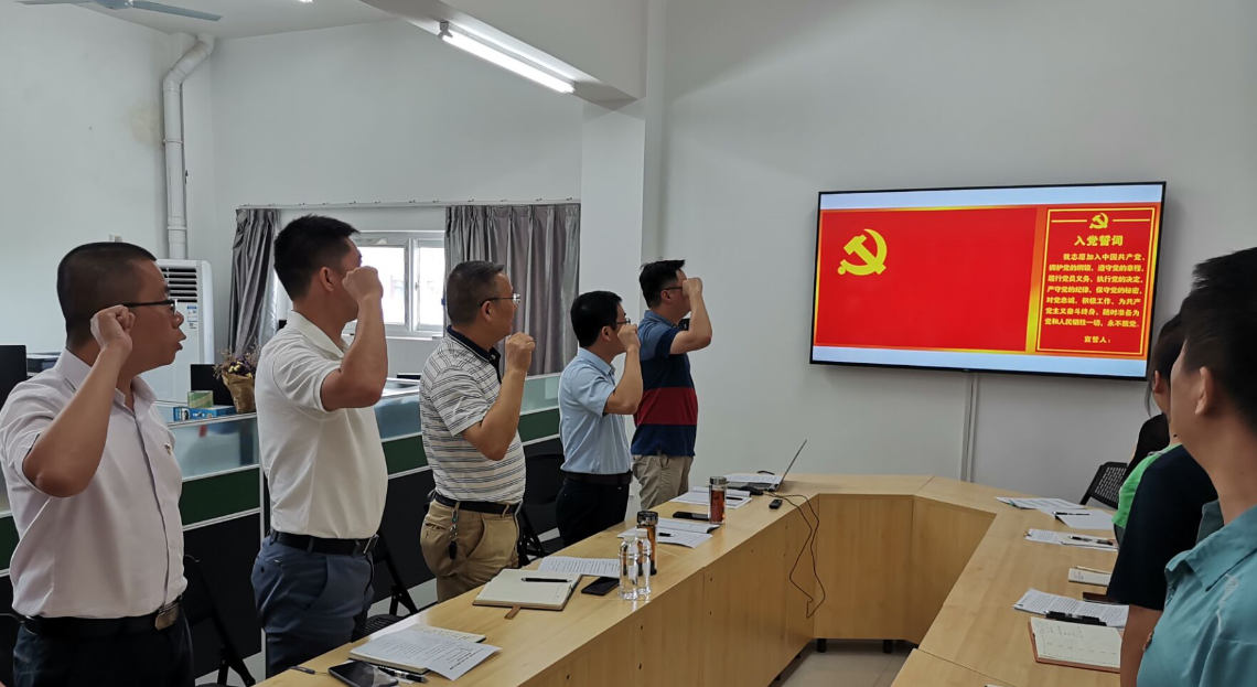 全体党员在鲜红的党旗下重温入党誓词,用铮铮誓言抒发对党的忠诚之情,表达党员的初心和使命。随后,全体党员观看了中组部和中央广播电视总台联合录制的专题节目《榜样四》,聚焦“不忘初心、牢记使命”主题,学习优秀共产党员坚定信仰、担当作为、服务群众、无私奉献的精神风貌。党支部书记辛立章同志还给全体党员讲授了“在抗击疫情中守初心担使命”的主题党课,共同学习贯彻习近平总书记关于做好常态化疫情防控工作的重要讲话和重要指示批示精神,宣传战“疫”精神。