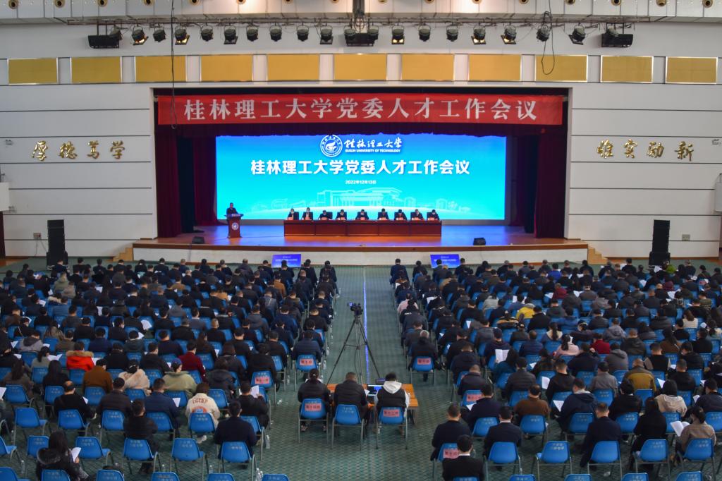 学校党委书记邓军围绕“以更大力度谋划推进人才强校战略,奋力开创新时代学校人才工作高质量发展新局面”主题作了讲话。他指出,党的十八大以来,习近平总书记站在党和国家事业全局高度,着眼实现“两个一百年”奋斗目标,围绕人才工作和人才发展作出一系列重要论述,党的二十大作出实施科教兴国战略,强化现代化建设人才支撑的重大部署,为新时代人才工作指明了前进方向、提供了根本遵循。全校各级党组织、各部门、各单位和广大党员干部教职员工要深刻领会习近平总书记在中央人才工作会议上重要讲话的丰富内涵和实践要求,深刻领会党的二十大关于深入实施人才强国战略的重大部署安排,牢牢把握新时代学校人才工作的正确方向,深刻领悟“两个确立”的决定性意义,增强“四个意识”、坚定“四个自信”、做到“两个维护”,深刻领会习近平总书记关于新时代人才工作的新理念新战略新举措、关于加快建设世界重要人才中心和创新高地的战略谋划、关于做好新时代人才工作的战略部署和重大举措,增强做好人才工作的政治自觉、思想自觉、行动自觉,以更加有力有效的举措推动学校人才工作高质量发展,推动全校人才队伍扩大增量、优化存量、提高质量、释放能量,在新的历史起点上奋力开创学校人才工作新局面,在加快人才强国建设和新时代壮美广西建设中展现桂工更大担当和作为。